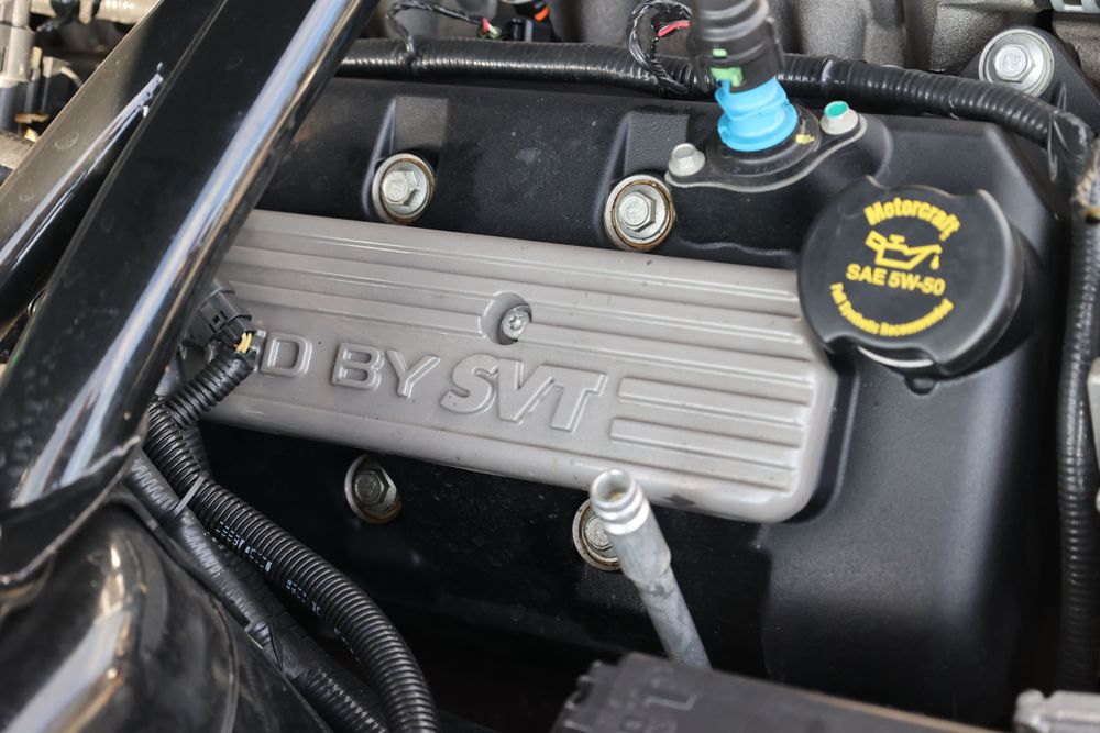 Celle-ci se distingue des autres Mustang sur le plan esthétique grâce à sa face avant unique qui n’a pas été reproduite pour les modèles de base comme c’est le cas pour l’actuelle génération de Mustang. Mis à part les quelques logos cobra et des sièges en cuir légèrement différent de ceux que propose la Mustang GT, la Shelby GT500 offre un habitacle pratiquement identique à celui de ses petites sœurs. Néanmoins, c’est sous le capot de cette dernière que la différence est nette.